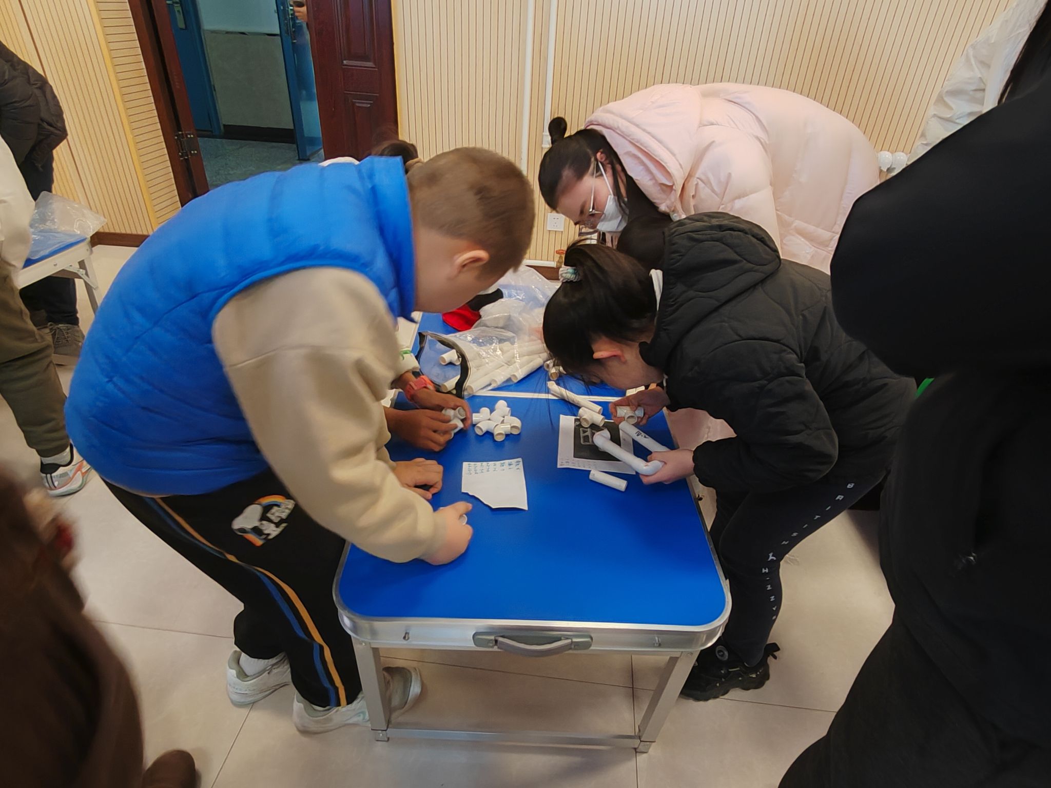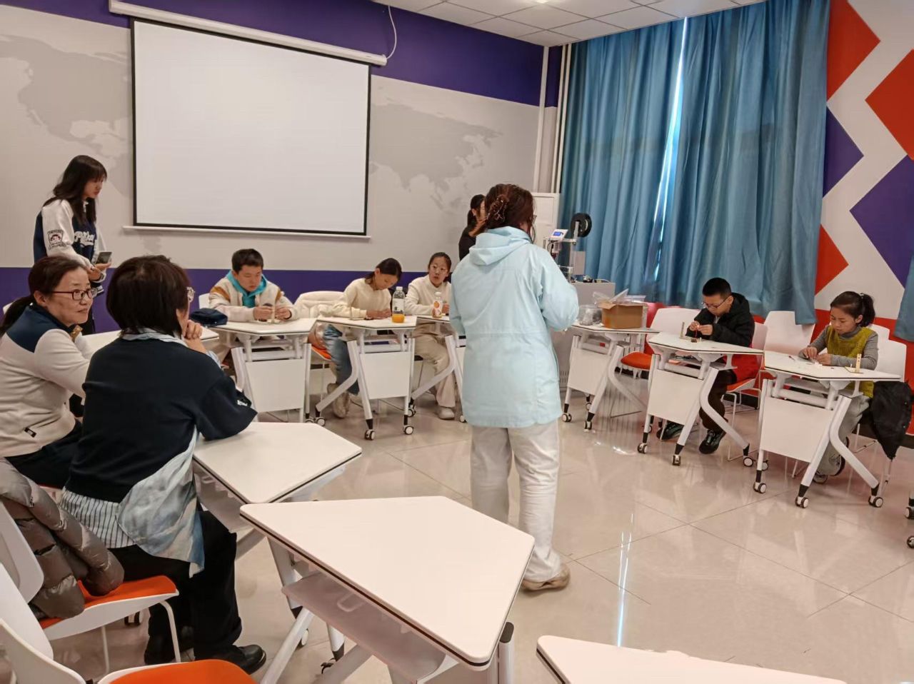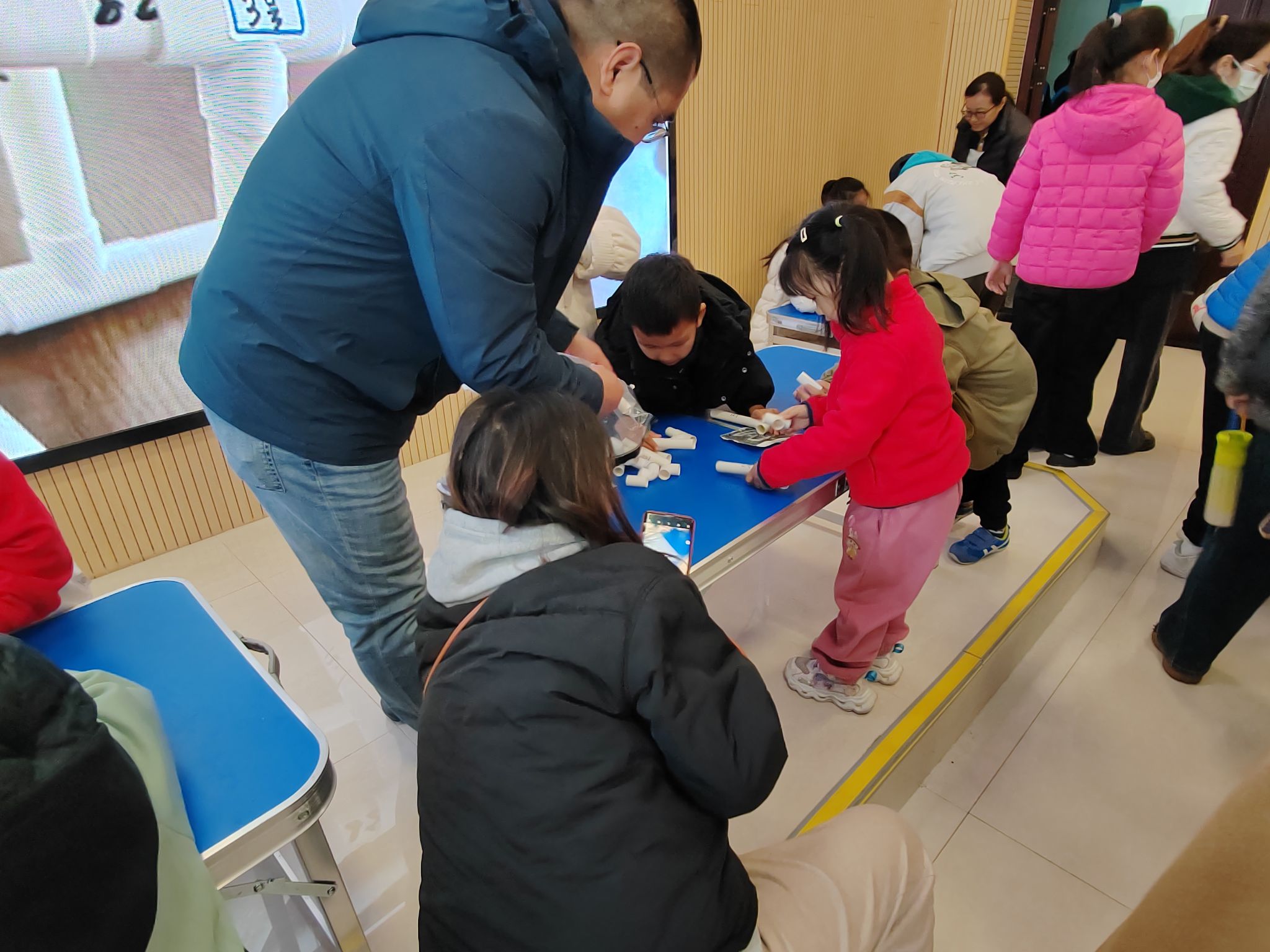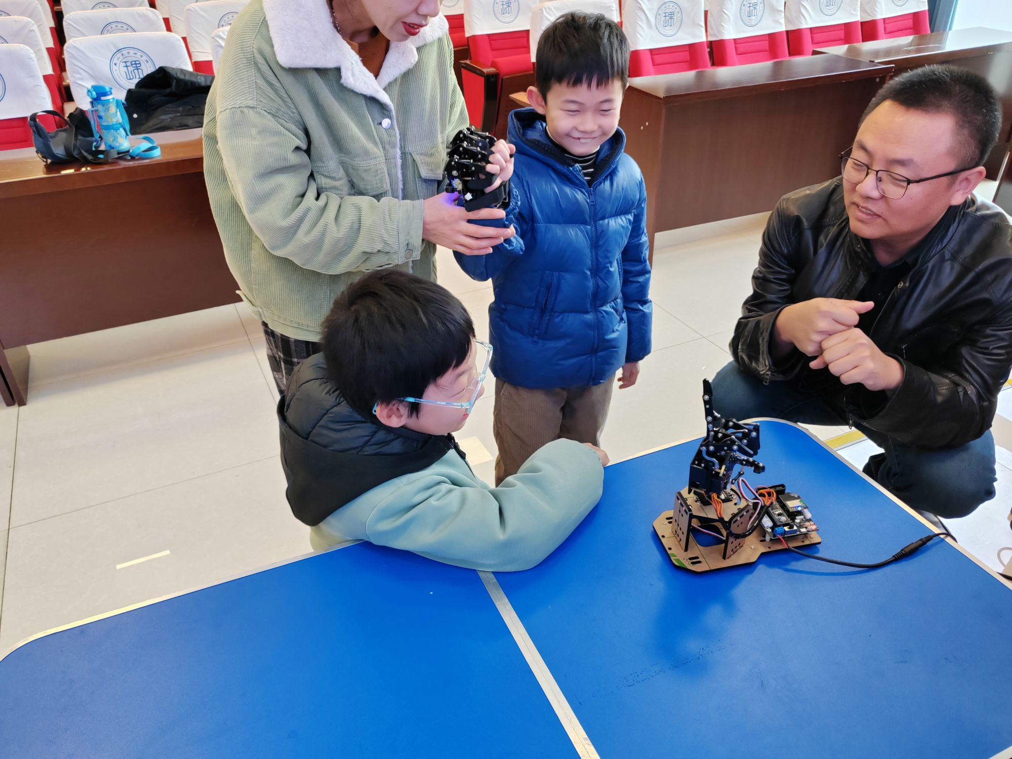 到了动手环节,家长与孩子摇身一变成为“小小工程师”,共同投入到微型水下机器人的组装工作中。大家分工合作,有的负责零件拼接,有的专注线路连接,现场气氛热烈而有序。