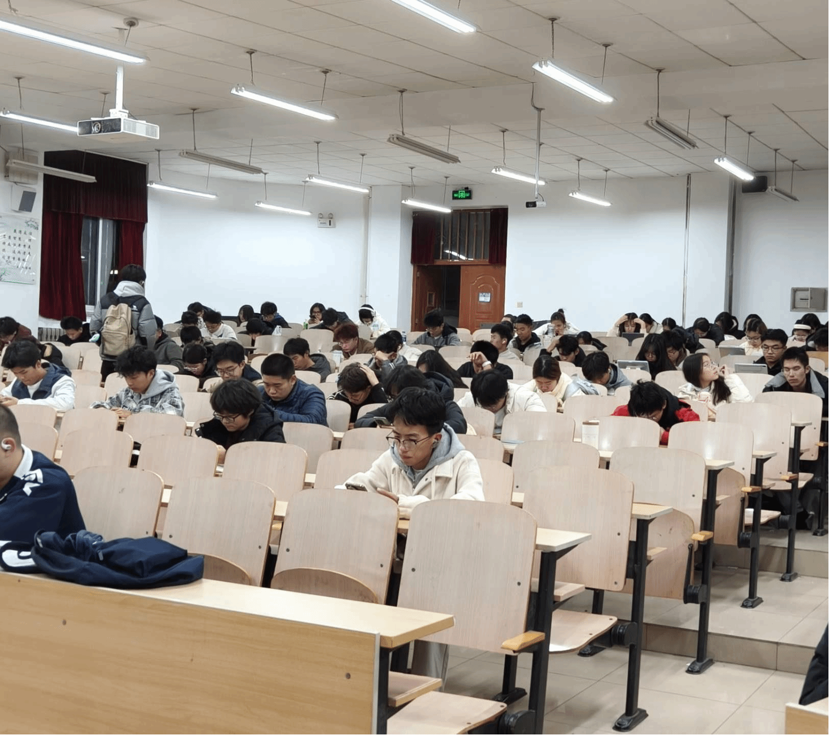 本次考试是理学院新生入学教育的重要环节。前期学院已组织学生系统学习《本科制度汇编》重要内容,帮助新生充分做好应考准备。此次考试内容以《本科制度汇编》为核心,涵盖宿舍安全、违纪处分细则、奖学金评定等与学生日常学习生活密切相关的重点方面,全面覆盖新生日常学习生活的重点关切问题。考试题型包括单选、多选和判断,既注重考察对制度条款的基础记忆,也侧重检验学生运用制度解决校园实际问题的综合能力。此次考试采用线上形式进行,学生通过扫描二维码进入答题。考试过程中,学生间隔就坐,自觉遵守考试规则,沉着作答,展现出良好的学业素养和纪律意识。各班班长和学习委员承担监考工作,严格遵守监考职责,全程严格维护考场纪律,保障考试的公正严肃。