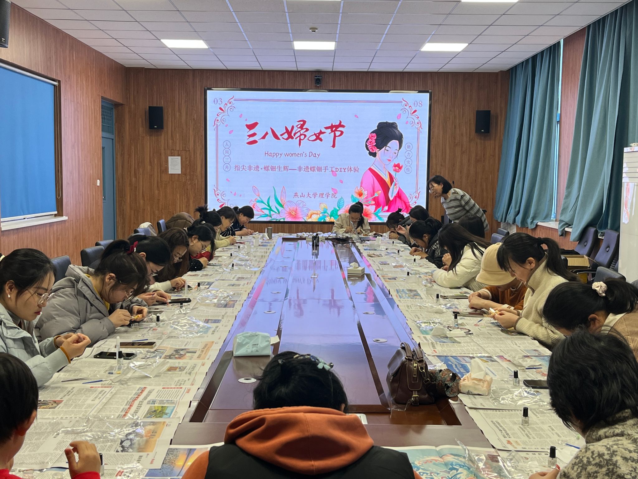 为庆祝第116个“三八”国际劳动妇女节,弘扬中华优秀传统文化,丰富女教职工的精神文化生活,3月5日下午,理学院分工会在理学楼A301精心策划举办了“指尖非遗·螺钿生辉”——非遗螺钿手工DIY体验活动。学院近50名女教职工欢聚一堂,在流光溢彩的螺钿世界中,度过了一个别具匠心的节日。