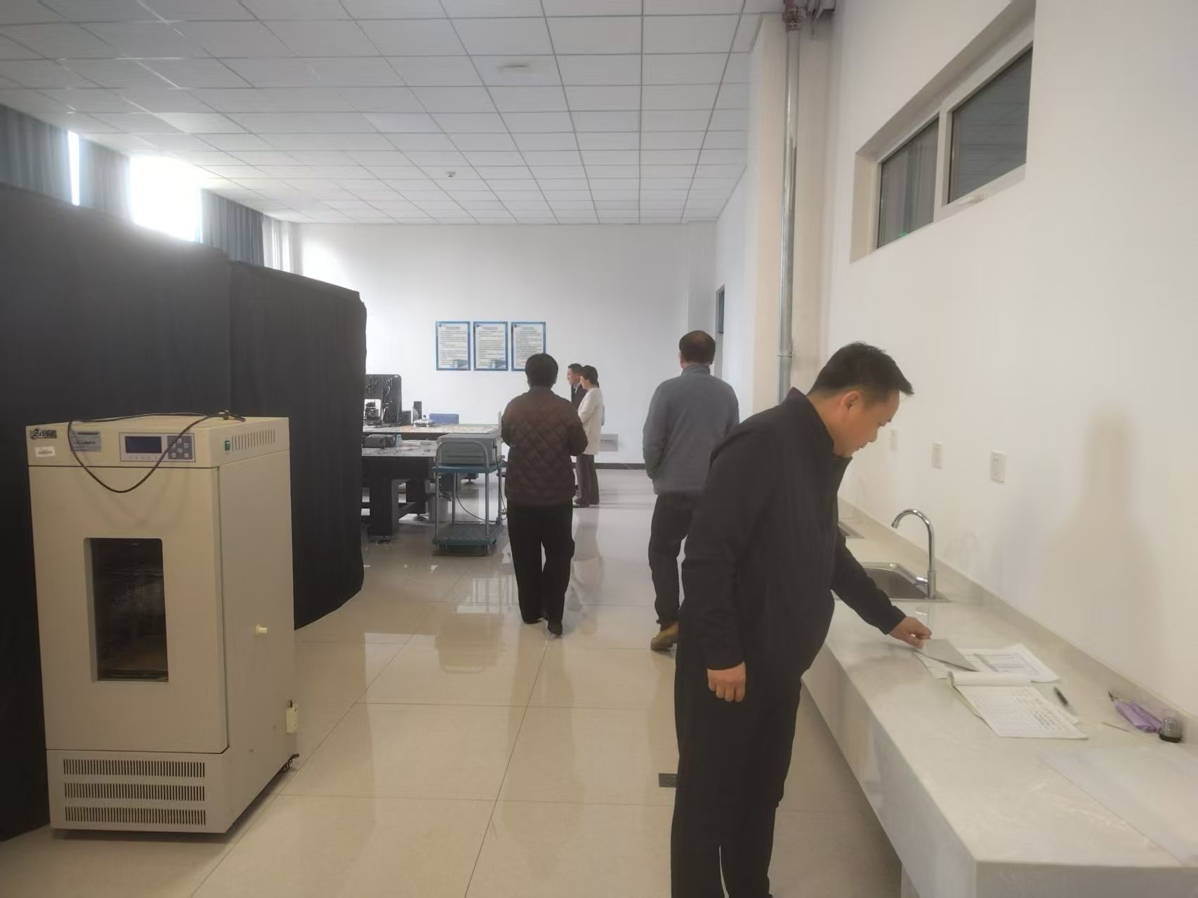 检查小组重点对施工安全、用水用电安全、消防安全、实验室的设备运行和使用状况、化学试剂使用管理、实验室自查及整改记录等方面进行了现场检查。通过检查发现,课题室和实验室总体情况良好,各科室负责人高度重视安全工作。同时检查中发现部分实验室《理学院实验室安全自查记录本》未按照规定记录、实验室堆放杂物等安全隐患。检查组现场做了记录和指导,要求相关实验室按照规范要求,立即进行整改。