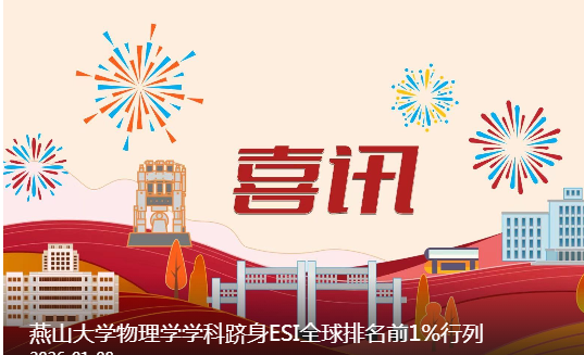 近日,科睿唯安(Clarivate)发布的最新一期基本科学指标数据库(ESI)数据显示,燕山大学物理学学科首次进入ESI全球排名前1%行列,标志着我校在基础学科领域的科研实力、学术创新能力与国际影响力取得重大突破。至此,燕山大学进入ESI全球前1%的学科总数增至6个。其中,工程学位居全球前1‰,形成了以工程学为引领,材料科学、化学、计算机科学、环境科学与生态学、物理学等多学科协同并进的发展格局。科睿唯安官网截图(以上...