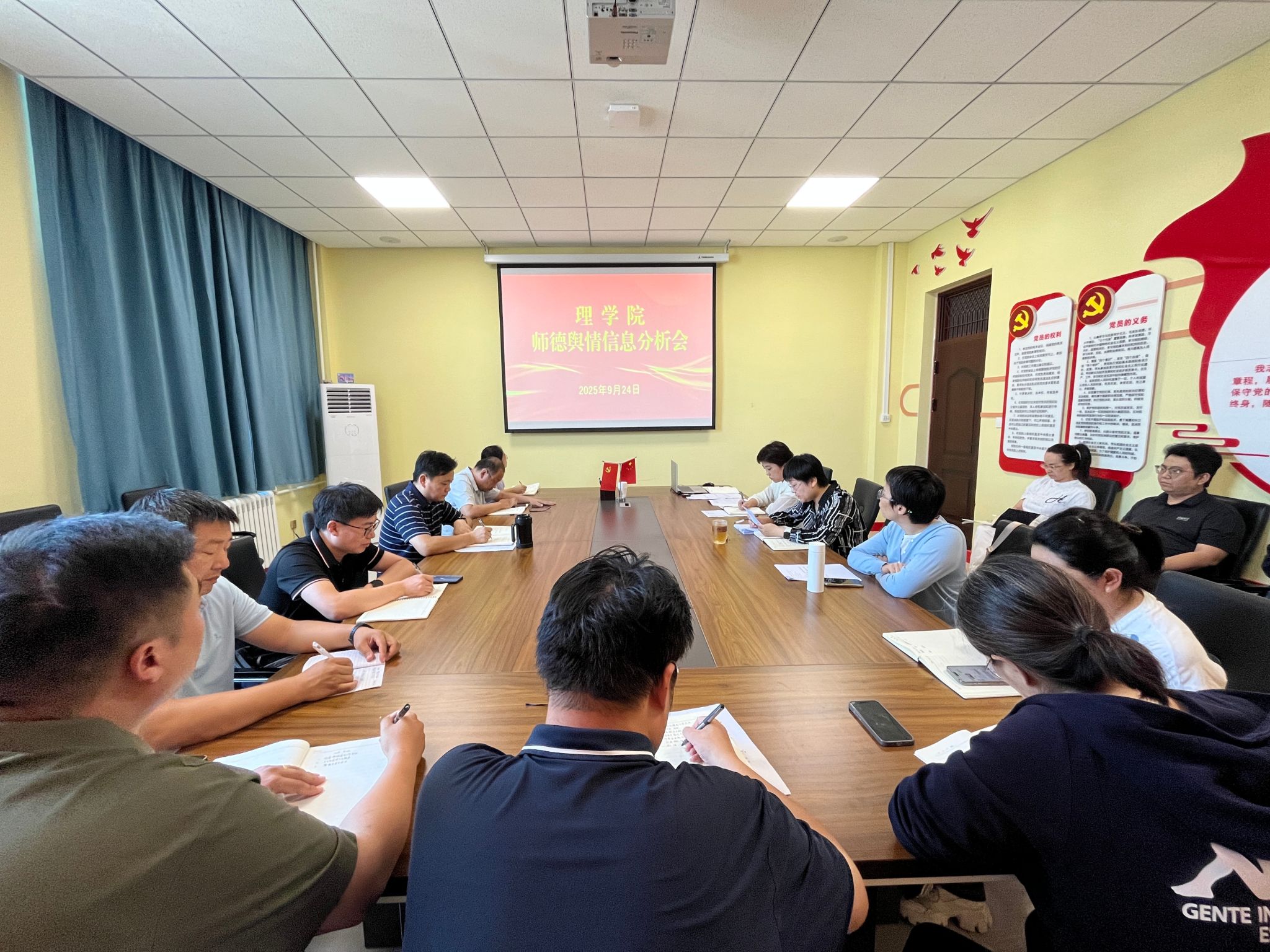 9月24日下午,理学院于理学楼A506召开秋季学期师德舆情信息分析会。学院班子成员、党委委员、科级干部、辅导员及教师代表参加会议,会议由学院党委书记刘琳主持。