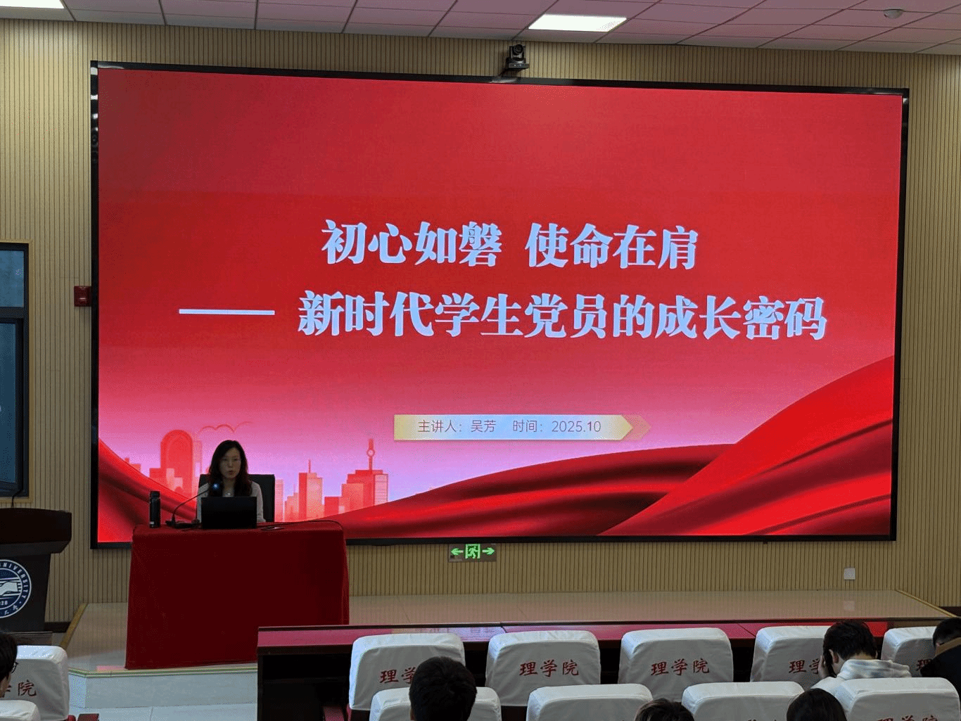 2025年10月16日下午2:00,文法学院组织员吴芳老师受邀为理学院分党校第74期党员、发展对象、入党积极分子和党支部书记培训班学员讲授题为《初心如磐 使命在肩--新时代学生党员的成长密码》的主题党课。