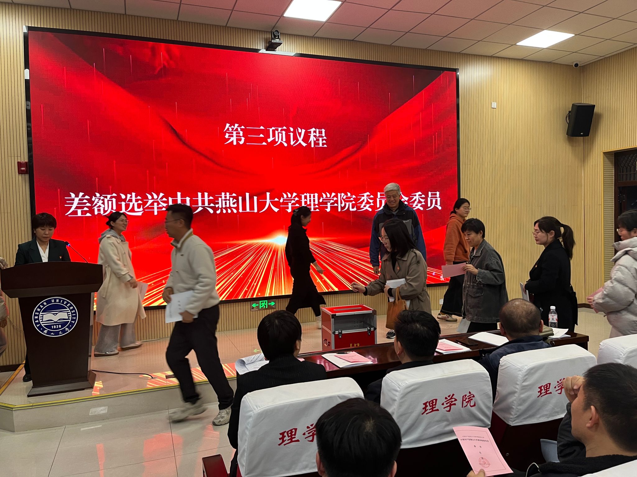 随后,中国共产党燕山大学理学院新一届委员会召开了第一次全体会议。会议通过无记名投票、等额选举方式,选举刘琳同志为学院党委书记,曾慧同志为学院党委副书记,讨论并决定委员分工事宜。