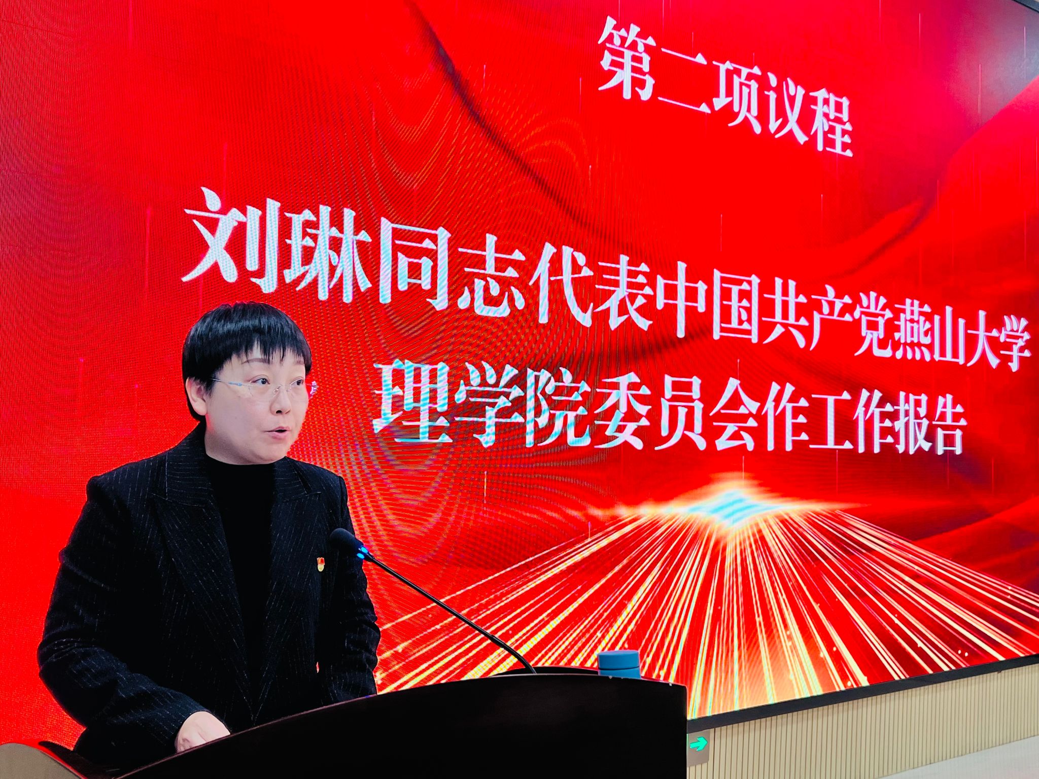 大会在庄严的国歌声中拉开帷幕。刘琳同志代表上一届党委作题为《廿五载同心深耕新征程聚力共筑为推进理学院内涵式高质量发展不懈奋斗》的工作报告,系统总结了过去五年学院在党建引领、人才培养、专业建设、学科建设、科学研究、师资队伍建设等方面的工作举措与成绩,分析了当前存在的问题和不足,对学院今后五年的发展目标和重点任务进行了规划和展望,号召全院师生党员走在前、做表率,力争闯出新路子、展现新作为、彰显新担当,用实际行动落实“十个新”的发展战略安排,励精图治谋发展,瞄准新方向、跑好接力棒,以崭新的面貌、昂扬的斗志、奋发的锐气,为助力学校“双一流”事业建设、奋力谱写理学篇章,作出新的更大的贡献!
